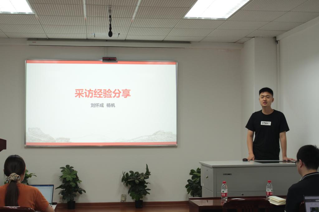 紧接着,王欣艺从确定采访对象,进行采访分组等9个方面介绍了“时光里的教材”故事挖掘的具体流程及注意事项。“口述历史”项目成员刘怀成、杨帆做采访经验分享,刘怀成分享了其采访祝寿康教授的经历,重点讲述了图片拍摄与素材留取的过程;杨帆分享了其采访胡元亮和宋大鲁老师的经历,通过两次采访经历的对比,重点讲述了采访提纲针对性拟定的方法。