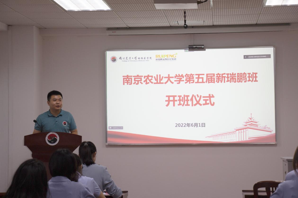 6月1日下午2:00,南京农业大学第五届新瑞鹏班开班仪式于逸夫楼3044成功举办。新葡萄8883官网AMG党委副书记刘照云、学工办副主任徐刚、新瑞鹏宠物医疗集团华东副总经理张伟东、人力资源部经理张蒙、招聘主管刘晓芹,以及第五届新瑞鹏班全体学生参与了此次开班仪式。