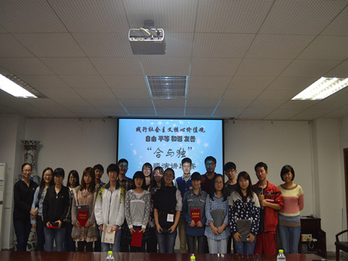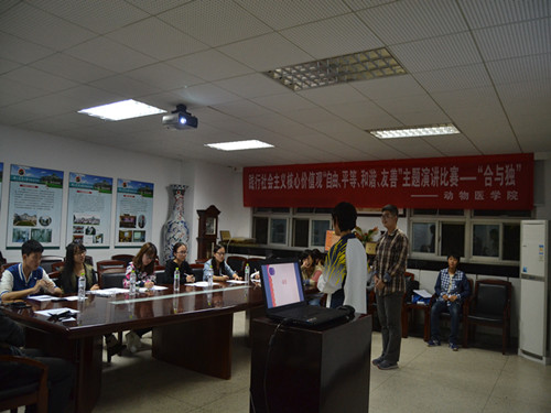 10月17日晚6:30,新葡萄8883官网AMG办公室在逸夫楼3046举行了践行社会主义核心价值观“自由、平等、和谐、友善”主题演讲比赛的初赛——“合与独”。此次比赛决赛由动医院大一新生参加,由兼职辅导员韩婧,学生会副主席宋扬,办公室主任朱怡蕾,执行副秘书长刘靖,网络部副部长张鹏皓担任初赛评委