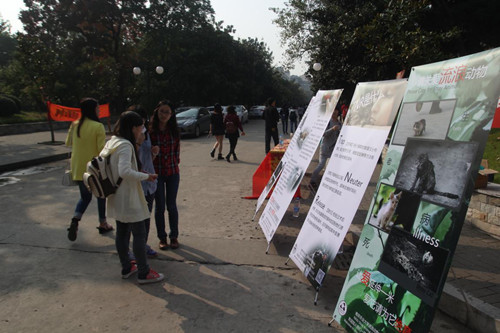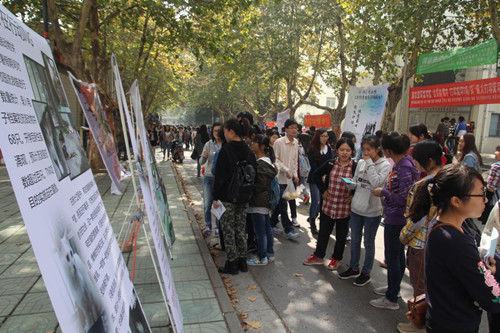22日至23日,流协在玉兰路展出了4块精美的展板,并与资环院志愿服务部合作,给来往的同学们普及TNR知识,分发宣传小册子。此次宣传,共发出小册子400余份,完成8米横幅的师生签名工作。