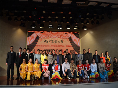 随后,典礼进入到正式的颁奖环节,分别由各设奖单位代表宣读本年度奖学(教)金获奖名单,它们依次是“罗清生”奖学金,“恒丰强”奖学金,“硕腾”奖学金,“浙江诺倍威”奖学金,“柯尼卡美能达”奖学金,“东西部大会”奖学金”,“生泰尔”奖教金,“仕必得”奖学金,“南农高科奖学金”,“武汉回盛”奖学(教)金,“新希望六和”奖学金,“禾丰”奖学金,“上海海利”奖学金,“森楠”奖学(教)金,“PIC”奖学金,“厦门御宝贝”奖学金。 期间,上海海利生物技术股份有限公司总经理胡锡作为企业代表也上台发表了讲话,他非常诚恳地向在座的同学们表示,兽医是个非常有前途的职业。同时他也提到兽医行业目前在中国尚处于起步阶段,可以发展的空间巨大,最后他殷切的希望大家将来能到海利公司工作任职。