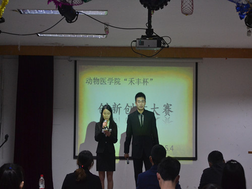 比赛分为两个部分:参赛者对作品的介绍环节,评委老师与参赛者之间的问答环节。19个参赛小组都满怀信心,在台上展现出具有创新意识的大学生风采。在介绍环节中,每个小组分别展示了他们富有创意的想法以及独特的产品,整个会场都洋溢着一种科学严谨的氛围,征服了在座的各位老师同学。例如“奶牛的自动化监控”,“神奇宝被”,“绿色鱼缸”等创意产品,充分体现出我们动医院学生敢于创新创优的一面。