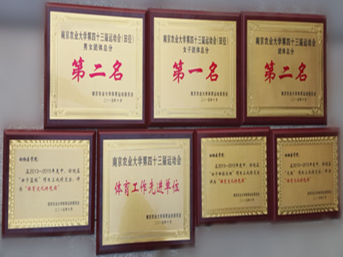 10月24日下午3:30,南京农业大学第四十三届运动会颁奖典礼暨闭幕式在体育中心隆重举行。全体动医运动健儿在过去的一年里大力发扬顽强拼搏的体育精神,勇攀高峰,再创佳绩,田径项目上荣获“女子团体总分第一名”、“男女团总分第二名”、“团体总分第二名”;足球、女子田径运动、女子篮球等项目荣获“体育文化特色奖”;据悉只有在连续三年中该项目成绩保持全校前三才能获此殊荣。