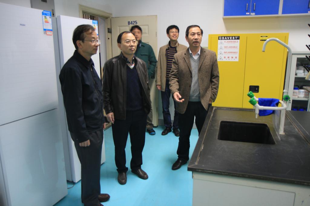 2015年11月12日上午,科技部农村司许曾泰处长和中国农村技术开发中心卢兵友处长、王振忠博士一行应学院院长周继勇教授的邀请,重点考察、参观了我院的教十一楼实验室、猪链球菌病OIE参考实验室、农业部动物细菌学重点实验室、农业部动物生理生化重点实验室