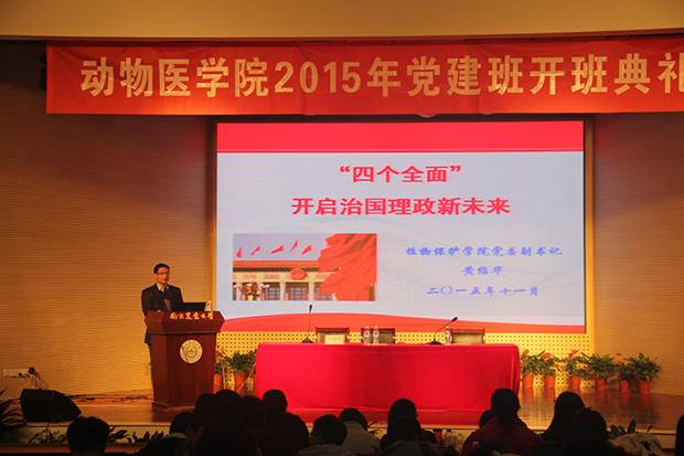 11月15日下午两点,新葡萄8883官网AMG2015年党建班开班典礼在大学生活动中心举办。植物保护学院党委副书记黄绍华、动医院党委副书记熊富强、政治学院马克思主义教研室主任朱娅出席开班典礼。全院本科生、研究生共200余名学员参加了典礼,开班典礼由辅导员郭荔主持。