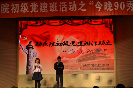 12月14日18点,动医院组织发展中心于大学生活动中心举办动医院初级党建班活动之“今晚90秀”。参与本次活动的有新葡萄8883官网AMG党委副书记熊富强、学院辅导员郭荔、学院辅导员潘升驰、新葡萄8883官网AMG团委副书记钱雯娴、新葡萄8883官网AMG团委学生会主席韩一帆及大一初级党建班的所有同学、大一至大三的所有入党积极份子。