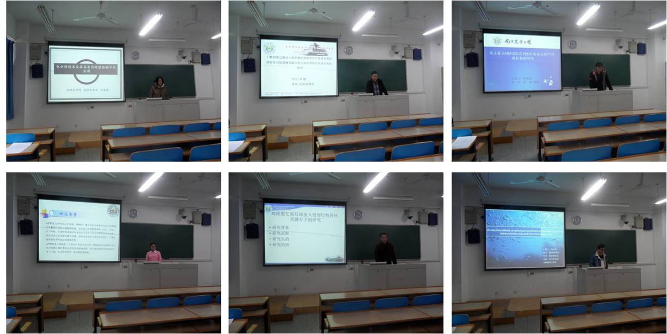 本着严谨的科研态度和学术交流的原则,论坛为学院内学科之间交流与发展提供了一个良好的平台。本论坛中,青年教师许媛媛、基础兽医系博士研究生洪键、预防兽医系博士研究生邹长超、王蕊和张振超以及临床兽医系博士研究生刘云欢分别做了题为《电分析技术应用于蛋白质修饰及定量的研究》、《丁酸钠通过改变肌肉线粒体对功能环节高脂日粮引起的肥胖的表观遗传机制研究》、《硫酸肝素是猪流行性腹泻病毒吸附受体》、《表皮生长因子(EGFR)在猪繁殖与呼吸综合征病毒入胞过程中的作用机制研究》、《鸡堆型艾美耳球虫侵入部位特异性的研究》和《富硒益生菌对CCl4诱导的大鼠的肝纤维化的保护作用》的专题报告。他们就各自的研究背景、问题假设、试验设计、研究结果等几个方面细致地阐述其从事的科研项目。报告人畅所欲言,与会者踊跃发问,学术评审委员现场提问并发表自己的学术观点、问题和建议,充分实行互动交流。