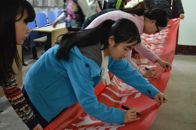 活动首先由主持人介绍本次调研活动的目的和意义,并向大家介绍了活动流程。后由辅导员老师郭荔发表讲话,她在讲话中指出同学们要提高对党的认识、注重在思想方面的改造以真正地达到党员的标准。在参与活动的过程中走出校园,跟各色人物交流,掌握一些科学的调研实践方法。同学们要珍惜这次调研活动的机会,加强自身修养,并将理论与实际联系起来,自觉践行社会主义核心价值观。在活动的最后。在活动最后,郭荔老师、团副钱雯娴及全体同学在横幅上签名并合影留念。