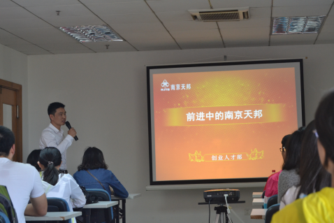 天邦质量中心主任周永银通过四个板块:辉煌的大北农集团、科技创新先锋江苏省农业科学院、前进中达到南京天邦和追求卓越,共创辉煌具体介绍了南京天邦的发展历程以及未来方向。在讲座的最后,行政人才中心主任苏雅君对讲座内容进行补充,并与同学们进行热烈的交流和讨论,解决同学们问题。