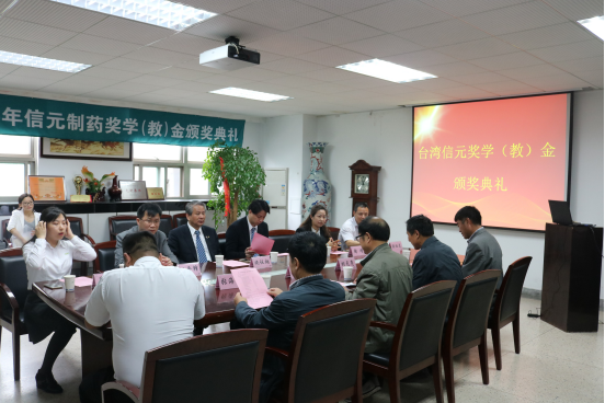 此次颁奖仪式分三个部分展开。第一部分,主持人介绍此次参加颁奖仪式的领导和嘉宾,并对台湾信元制药股份有限公司的历史和文化加以阐述。第二部分,颁奖仪式正式开始,由董事长施议烟先生发言并宣读获奖决定,获奖师生依次上台领奖。颁奖结束后,获奖老师代表和获奖教授代表发表获奖感言,最后学院副院长苗晋锋对此次活动进行陈述和总结。第三部分,公司代表与获奖师生进行交流。