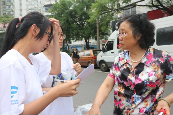 文化小分队成员正发放调查问卷