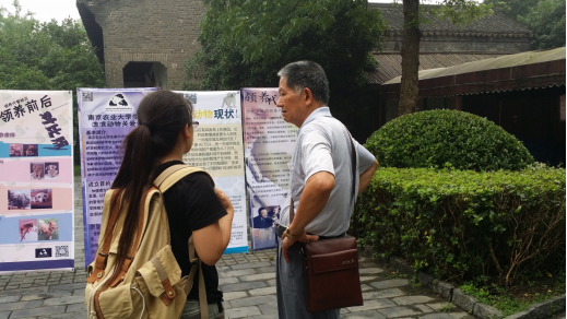 当日下午时实践团分为了四组,拿着这次关于“领养代替购买”的活动宣传单分别到了南京农业大学校内、南京理工大学校内、下马坊公园、中山陵景区以及周边商场附近人流量大的地方发放传单。一段时间后各组成功发放完所有传单,为这次流协暑期社会实践活动圆满画上句号。