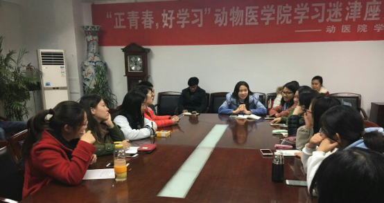 直系班级之间一对一的交流形式很快拉近了学生之间的距离,现场氛围十分活跃。期间,同学们围绕有关学习方法、专业培养、职业规划等方面展开了讨论,有关专业学习面的各种疑惑都得到了很好的解答。对于学习和生活遇到困难的同学,高年级的学长学姐们主动地提供帮助和建议,并指导和鼓励大一同学们之间增加交流和互助,培养良好的人际关系和生活习惯,尽快地适应健康向上的大学生活。这种学生之间互动的学习形式不仅起到了课堂之外加强专业学习的效果,更是增进了同学们之间的感情和集体归属感。通过这次学业帮扶形式座谈会,不仅新生们的学风建设得到了加强,更使同学们真切地感受到自己身处在动医温暖的大家庭之中。