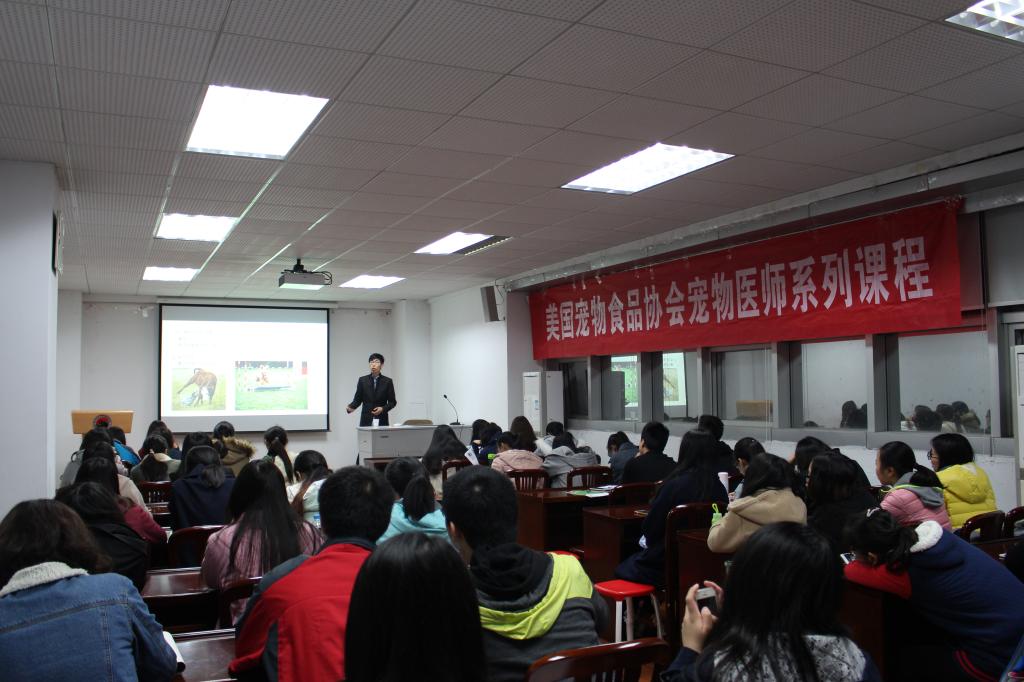 3月30日晚7点,美国宠物食品协会宠物医师系列课程在南京农业大学逸夫楼3044如期举行。我院有幸邀请到获得中英认证的宠物训练师卢跃文老师,为同学们带来有关宠物行为的讲座。