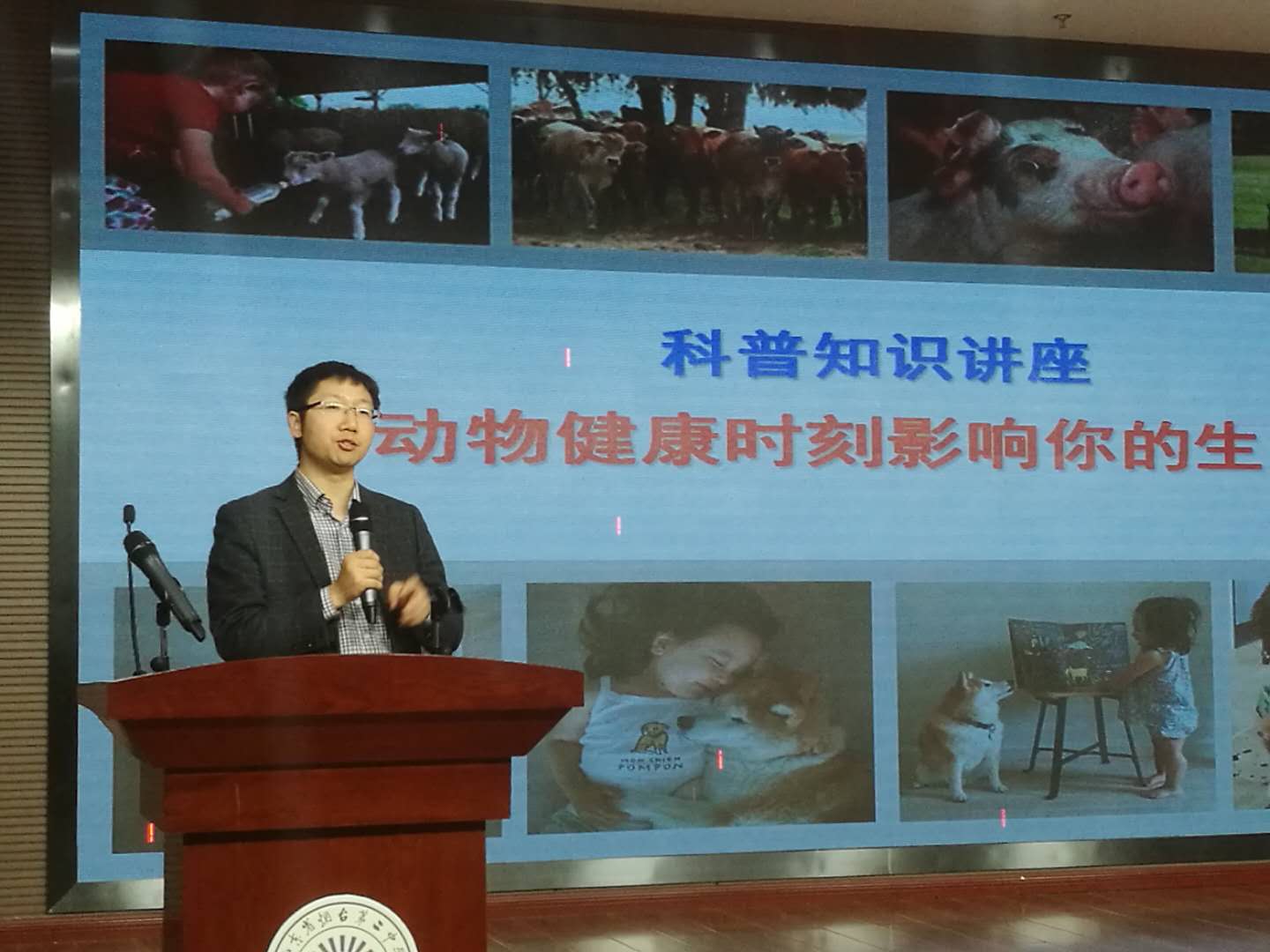 随后,熊富强为烟台二中高一年级学生作了题为《动物健康时刻影响你的生活》的科普知识讲座。从身边的动物说起,带领同学们走进神奇的动物世界,深入浅出、幽默诙谐的报告,赢得了在场师生阵阵掌声。