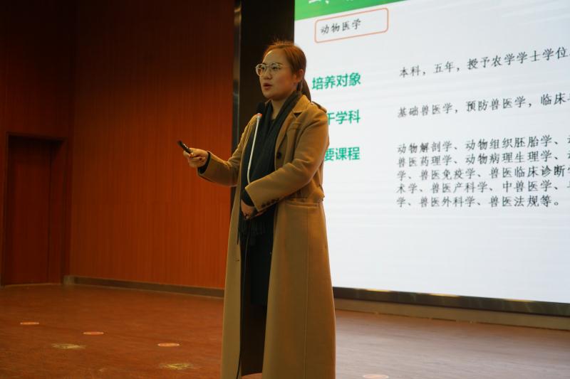 为了更好地帮助高中学生全面认识自我,认识职业和高校专业,在山东省教育厅的指导下,山东教育电视台组织开展本次“适合的专业,成功的方向——大学专业认知公开课”活动。3月17日,我院辅导员臧铭慧走访了潍坊四所中学,分别为安丘实验中学、寒亭一中、潍坊中学、潍坊一中,为学生和学生家长们系统化讲解动物医学专业及学习的各种学科的发展情况、学生素质要求、就业前景等内容。