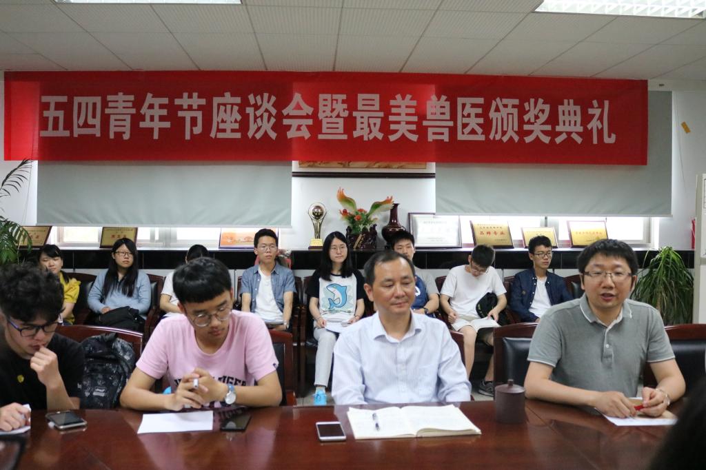 2018年5月2日下午14:00,我院在逸夫楼3036组织召开五四青年节座谈会暨最美兽医颁奖典礼。学院党委书记范红结、党委副书记熊富强、团委副书记金洁南及各团支部青年学生代表参加了本次座谈。会议由党委副书记熊富强主持。