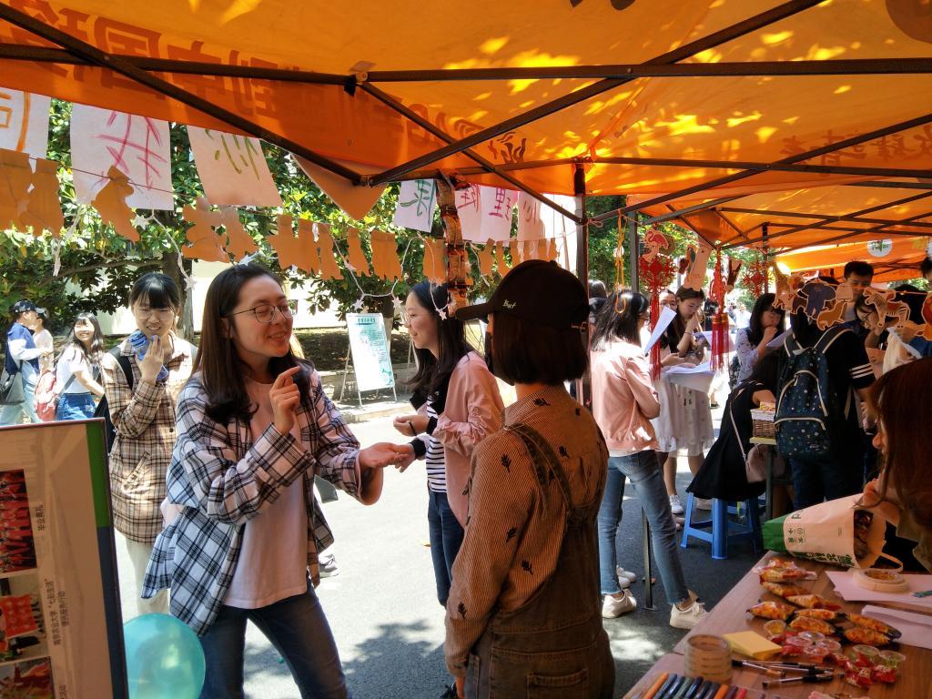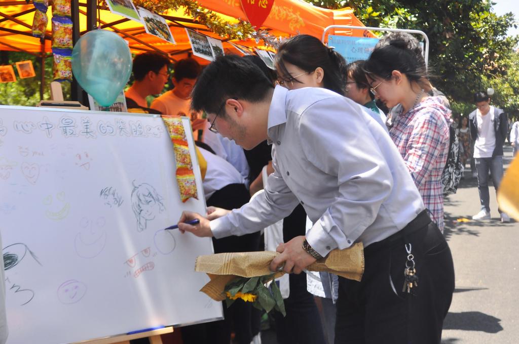 在各院展示区域,我院准备了“你来比划,我来猜”、“画出心中最美的笑脸”、“传递一句温暖的话”三个小游戏。