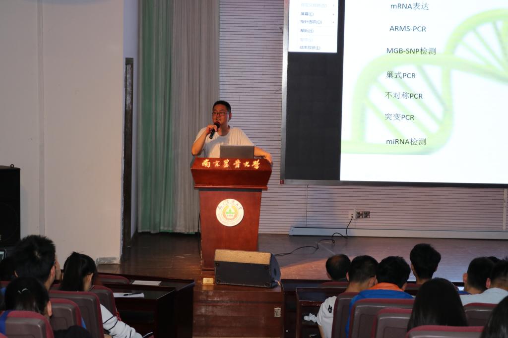 2018年5月10日下午,新葡萄8883官网AMG拓维精品学术活动之“实时荧光定量核酸扩增技术”讲座于教四楼报告厅成功举办。本次活动由我院研究生会学术部孙昭宇主持,主讲嘉宾为通用公司技术经理刘宗文,我院研究生以及部分其他学院的学生聆听本次讲座。