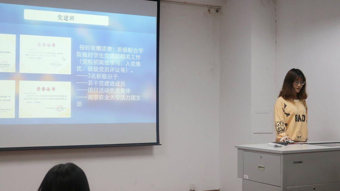 按照抽签顺序,11个团支部的负责人依次上台对先锋支部建设情况进行汇报。他们从工作机制建设、支部学风建设、支部文化建设、PU平台建设、特色项目五个方面汇报了团支部这一年的建设情况。动医174团支部开展“医帮禽兽”主题活动,对南京几个高校的学生展开问卷调查,了解校园流浪动物现状和相关知识普及程度,并且通过摆摊宣传等形式普及保护流浪动物相关知识,卓有成效。