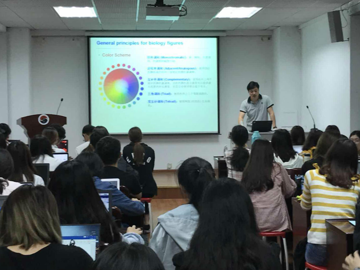 为推进2018年学院本科生SRT项目的实施,培养本科生开展科学研究的能力与素质,学院邀请生理教研组孙钦伟老师于5月21日下午14:00在逸夫楼3044进行了题为“Guide of Simplified Plotting Skills for Life Science Studies”的SRT讲座。本次讲座由曹瑞兵副院长主持,到场聆听讲座的为2018年SRT项目主持人及成员。