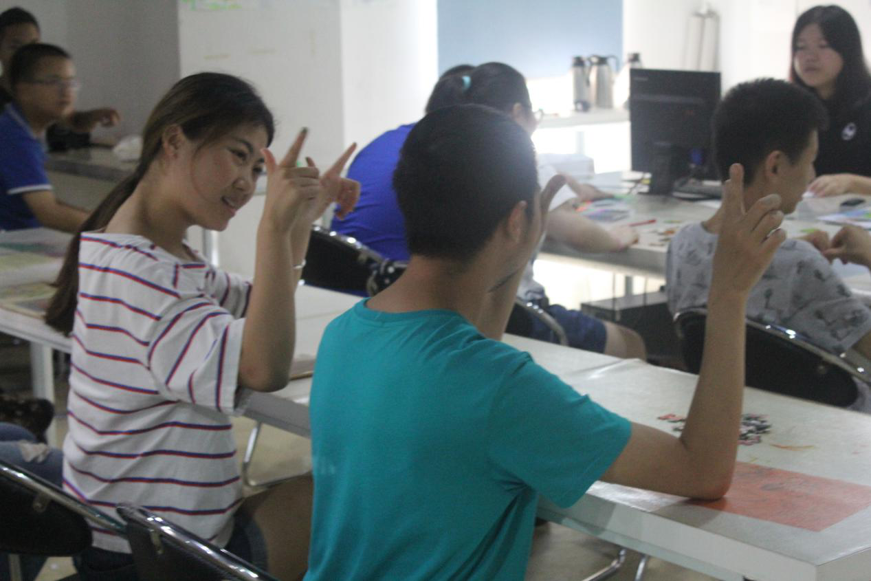 在前期志愿服务工作的基础上,团队成员设计了中国经典诵读、手工制作课堂、防拐防骗情景剧等课程,利用讲解寓言故事、纸盘手工、绘画制作、手语教学、人际交往培训、室内运动等课堂活动,帮助自闭症儿童减轻人际交往障碍,训练自闭症儿童身体素质、适应能力,并与睿泽障碍人士中心的自闭症儿童们建立了深厚的感情。