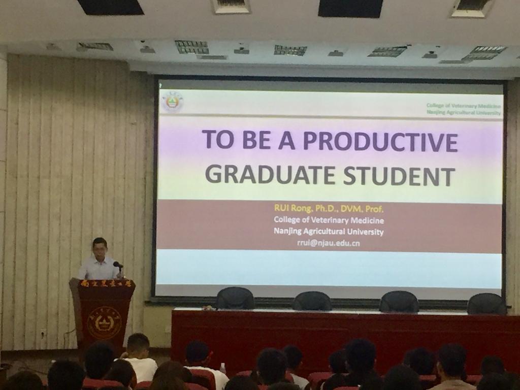 接着芮荣教授详细阐述了如何“To be a productive graduate student“。研究生是学术人生的良好开始,站得高方能看得远。好的开始是成功的一半,但也需要坚持不放弃,坚持创新。研究生也是自然人及社会人,要处理好研究生期间的各种关系。