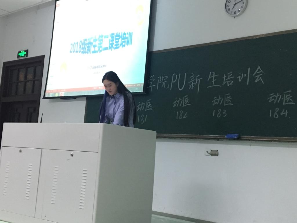 校PU培新中心闫卓君同学首先给大家播放了PU的培训宣传视频,并认真讲解了我校关于实践学时的认定条例,PU平台及APP的使用,其他工作人员现场指导同学们使用PU软件。