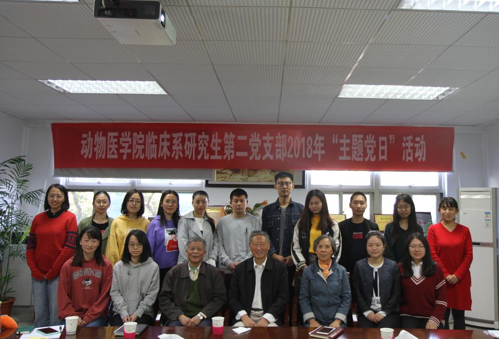 为不断提高党员思想,丰富党组织生活,进一步明确党员义务,追寻未来目标,2018年10月28日上午9点,我院临床系研究生第二党支部在逸夫楼3036举办了主题为“领略历史成就,传承兽医风骨”的2018年“党日活动”暨闭幕式。我院退休教职工党支部的张书霞书记、沈永林老师和王小龙老师应邀出席了本次活动。活动由支部副书记樵明玉主持,参加的同学包括支部全体党员、积极分子和提交了入党申请书的同学。