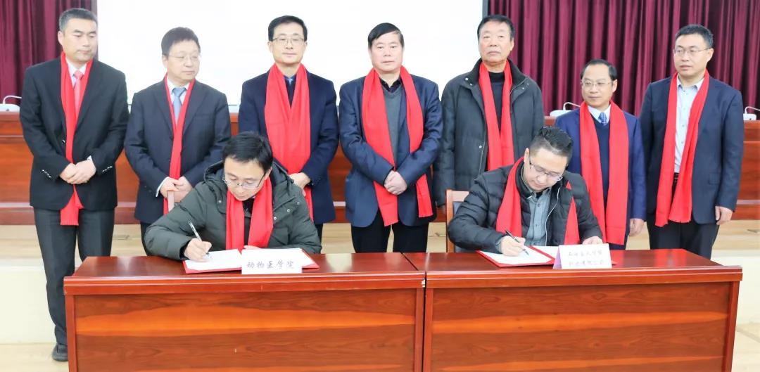 江苏南京农大动物药业有限公司董事长翟中树与院方代表曹瑞兵签署合作协议