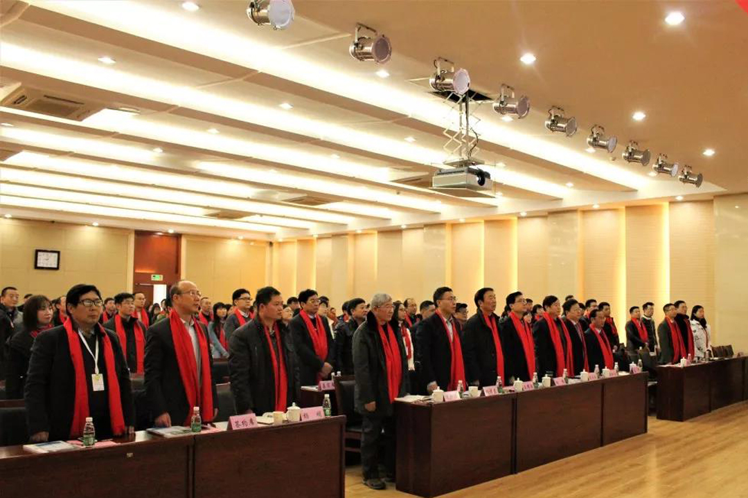 会议伊始,全体参会嘉宾起立,奏放校歌,致礼母校。