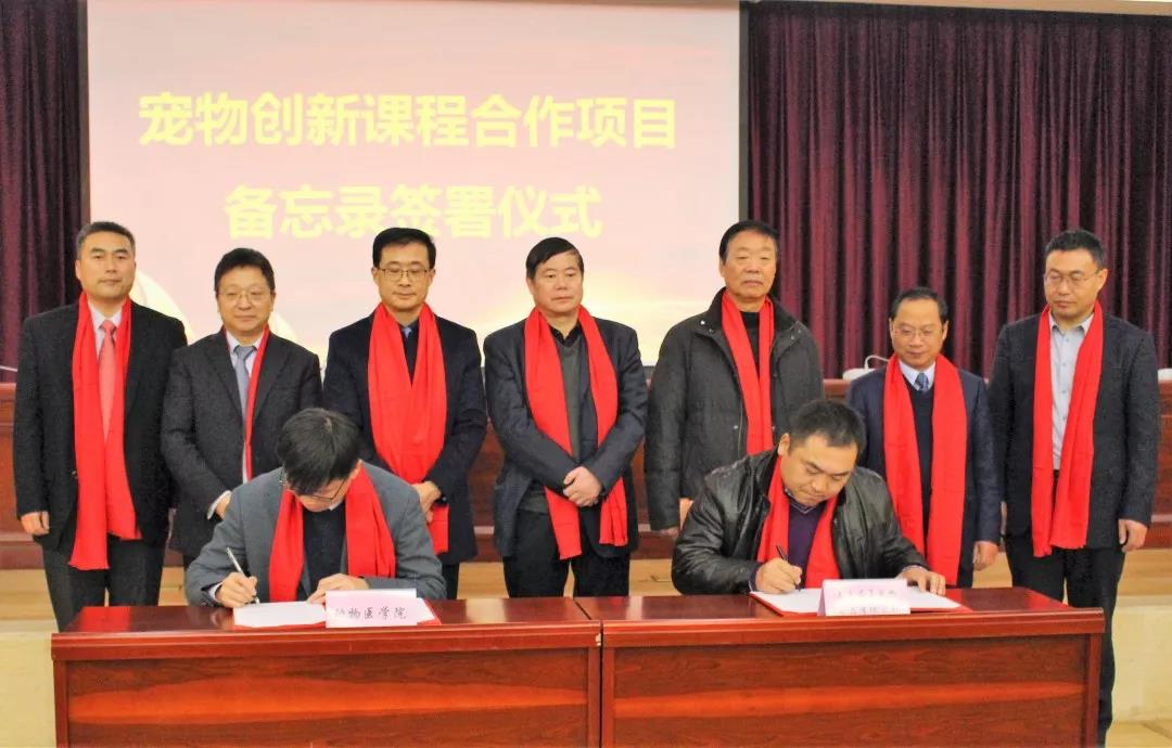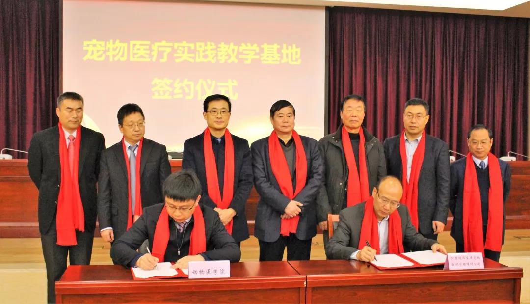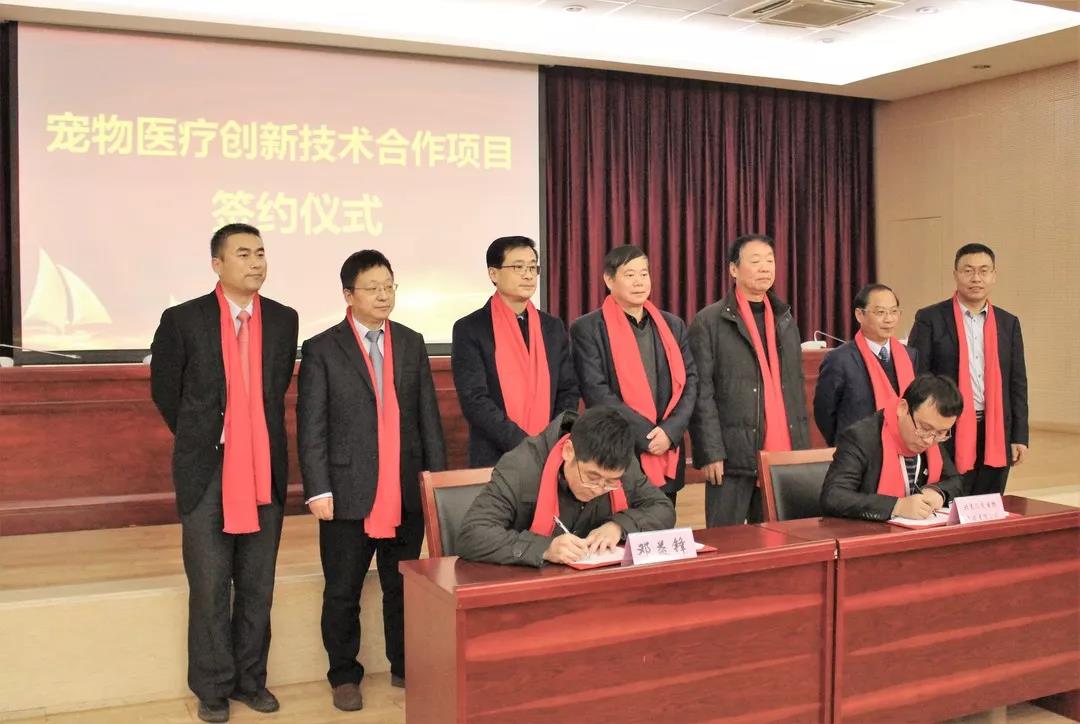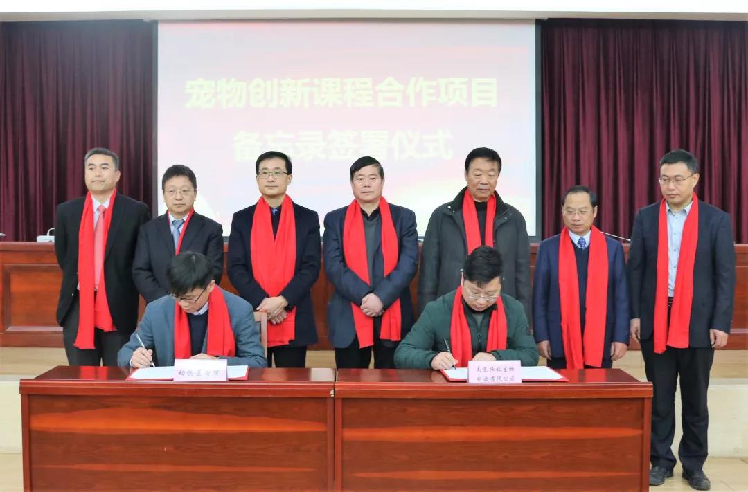 南京睿嘉宠物用品有限公司总经理勾连军与院方代表苗晋锋签署合作协议