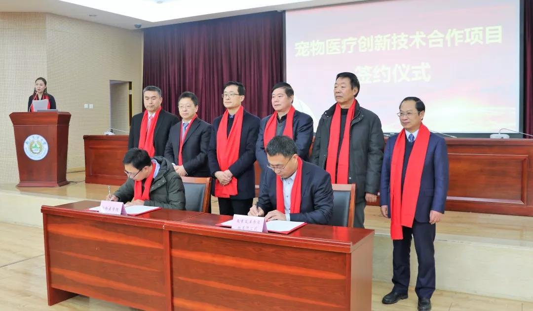 江苏瑞派东华宠物医疗管理有限公司总经理赖晓云与院方代表曹瑞兵签署合作协议