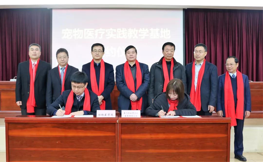 厦门方小乖宠物医疗有限公司经理方莉娟与院方代表曹瑞兵签署合作协议
