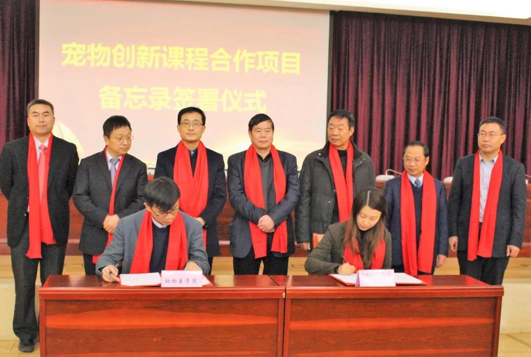第三项议程,宠物创新课程合作项目,为进一步发挥学院的技术优势,充分利用学院目前已有的医疗设备和设施,为有技术培训需求的公司开展相关培训服务。本次共有四家企业与学院达成课程培训合作意向,分别是皇誉宠物食品有限公司、南京宠阳企业管理有限公司、南京兴牧生物科技有限公司、及南京睿嘉宠物用品有限公司。院方代表苗晋锋副院长与四家企业代表分别签署了合作协议。