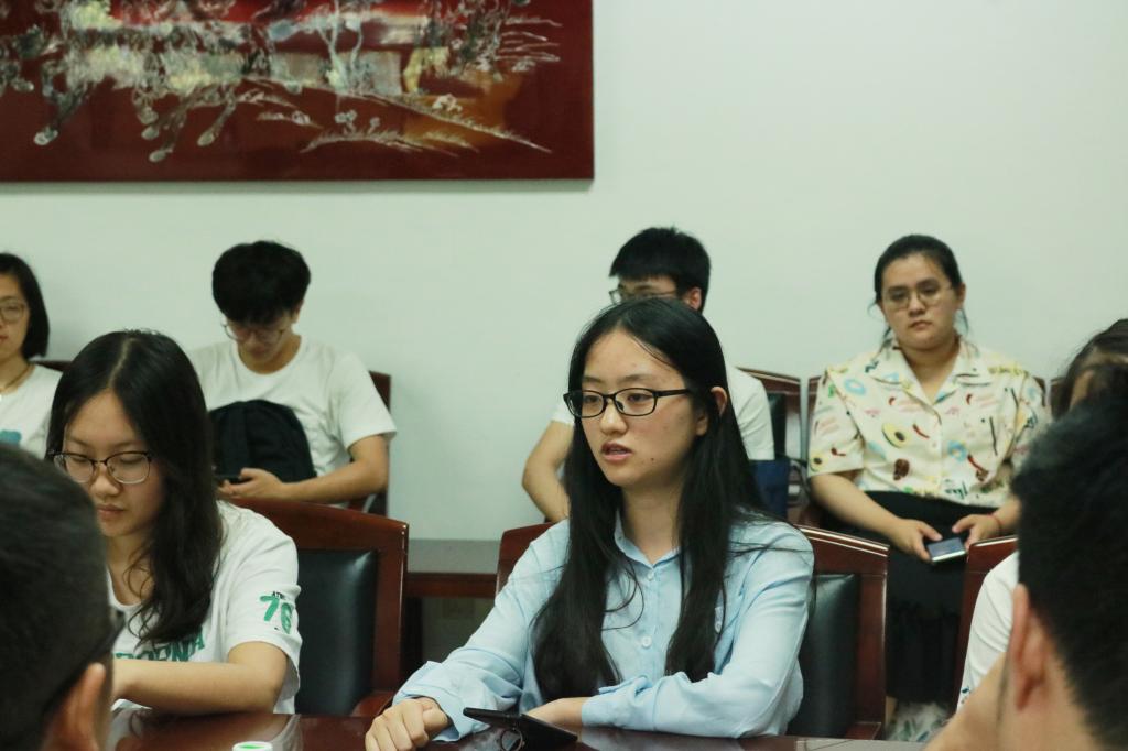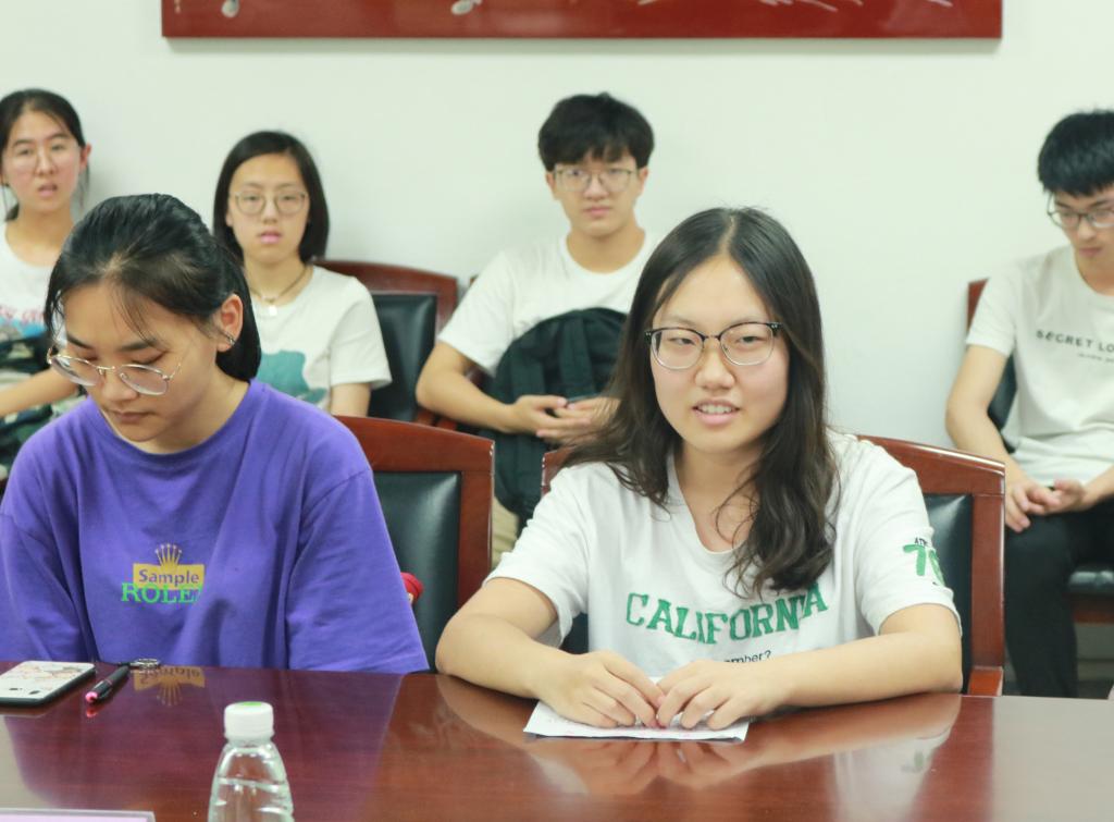此后,班级同学代表谢雨欣和闫玉楠两位同学就大学一年以来的学习生活、成长经历之中所收获的经验进行交流分享。