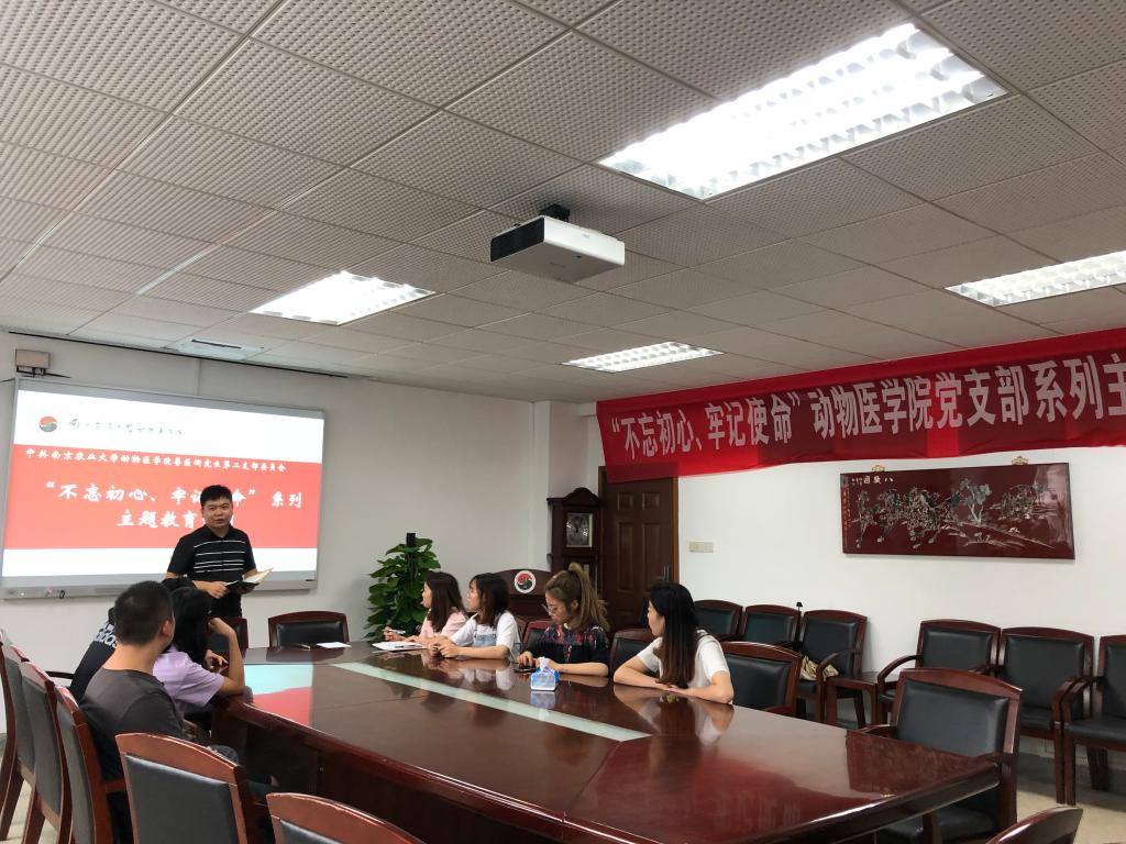 9月26日上午11:00,中共新葡萄8883官网AMG兽医研究生第二支部委员会,在逸夫楼3036召开“不忘初心、牢记使命” 系列主题教育学习会。研究生专硕第二党支部全体党员到场参加。