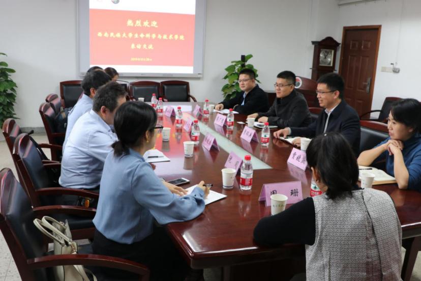 10月28日,西南民族大学生命科学与技术学院教学院长唐善虎一行6人来我院考察交流。我院副院长曹瑞兵,动物科技学院副院长蒋广震、食品科技学院实验中心副主任李伟、新葡萄8883官网AMG教学秘书贾晓庆等接待了唐善虎一行并出席了交流会。