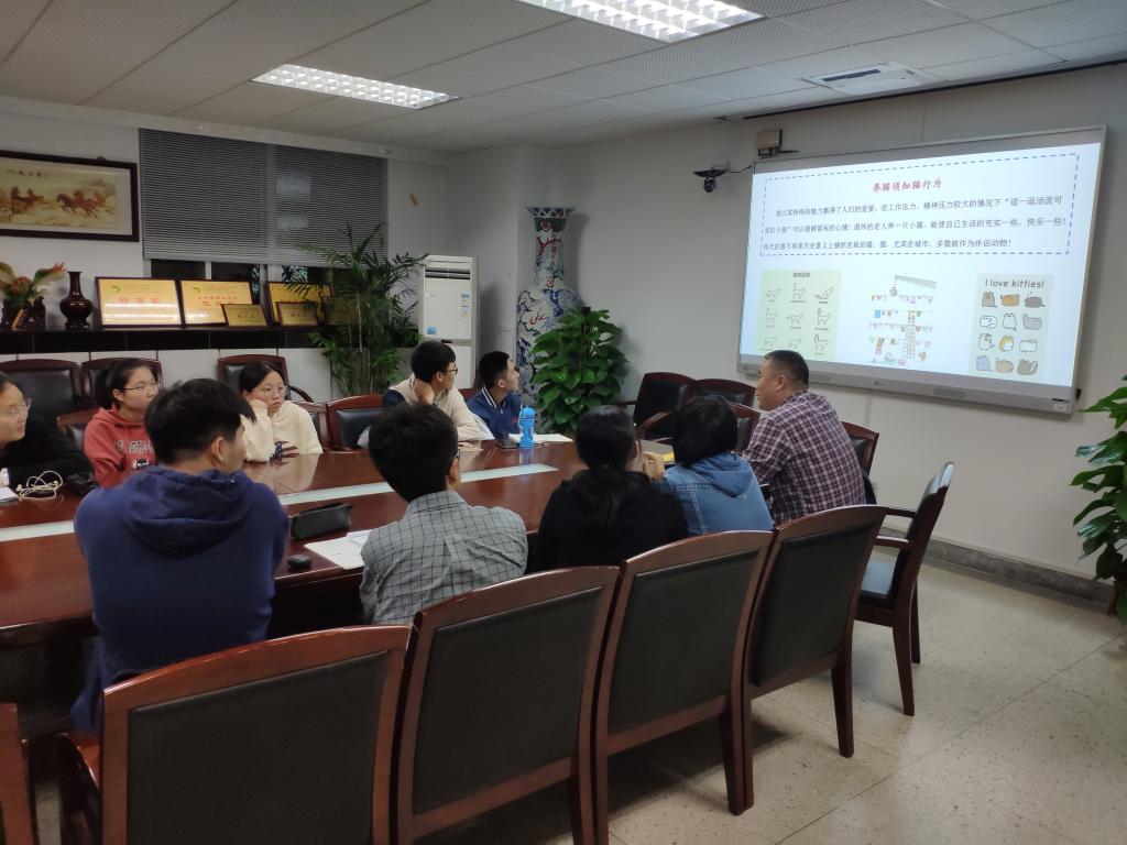 首先,李老师通过提问同学们“最近一周、一个月、最近半年觉得最幸福的事情是什么”来引起同学们的思考“幸福”这件事。李老师通过自己参加辅导员工作的一些经历和感受,跟同学们定义了幸福就是:有事做、有希望、有人爱。
