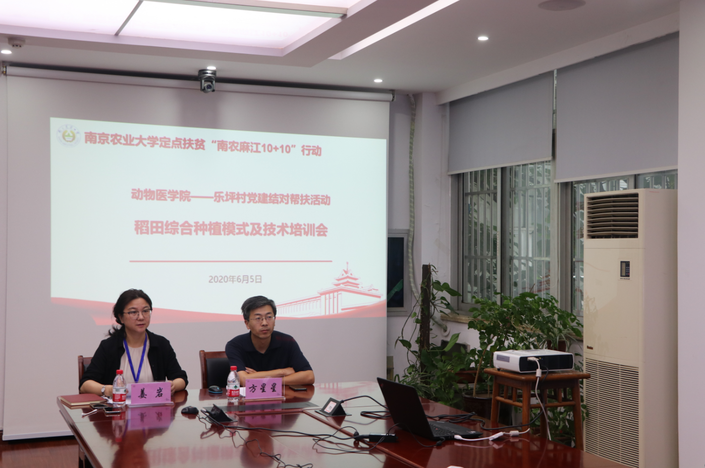6月5日上午,为助推麻江县坝芒乡乐坪村脱贫攻坚和乡村振兴,落实“南农麻江10+10行动计划”,我院姜岩书记主持两地线上交流,会议分为两个议程,一,疫情下的党建工作开展,会上认真学习了习近平总书记关于扶贫工作重要论述的重大意义,姜岩书记回顾了2019年我院做出的主要扶贫成绩,并征求乐坪村两委意见,收集村委需求,疫情过后,将再次赴现场交流。二、由方星星老师做关于稻田综合种植模式及技术讲座,主要从稻田养殖模式的发展背景,技术要点,日常管理注意事项,以及病虫防害方面开展,现场村民反响热烈。