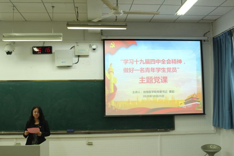 开班典礼以后,姜岩书记为全体党建班成员上了以“学习十九届四中全会精神,做好一名青年学生党员”为主题的主题党课,报告提出了青年学生要有坚定的理想与信念,要有爱国主义精神与情怀,锤炼品德与修养,练就过硬的本领,并提出希望各位同学能够严格要求自己,积极成为一名优秀的共产党员。