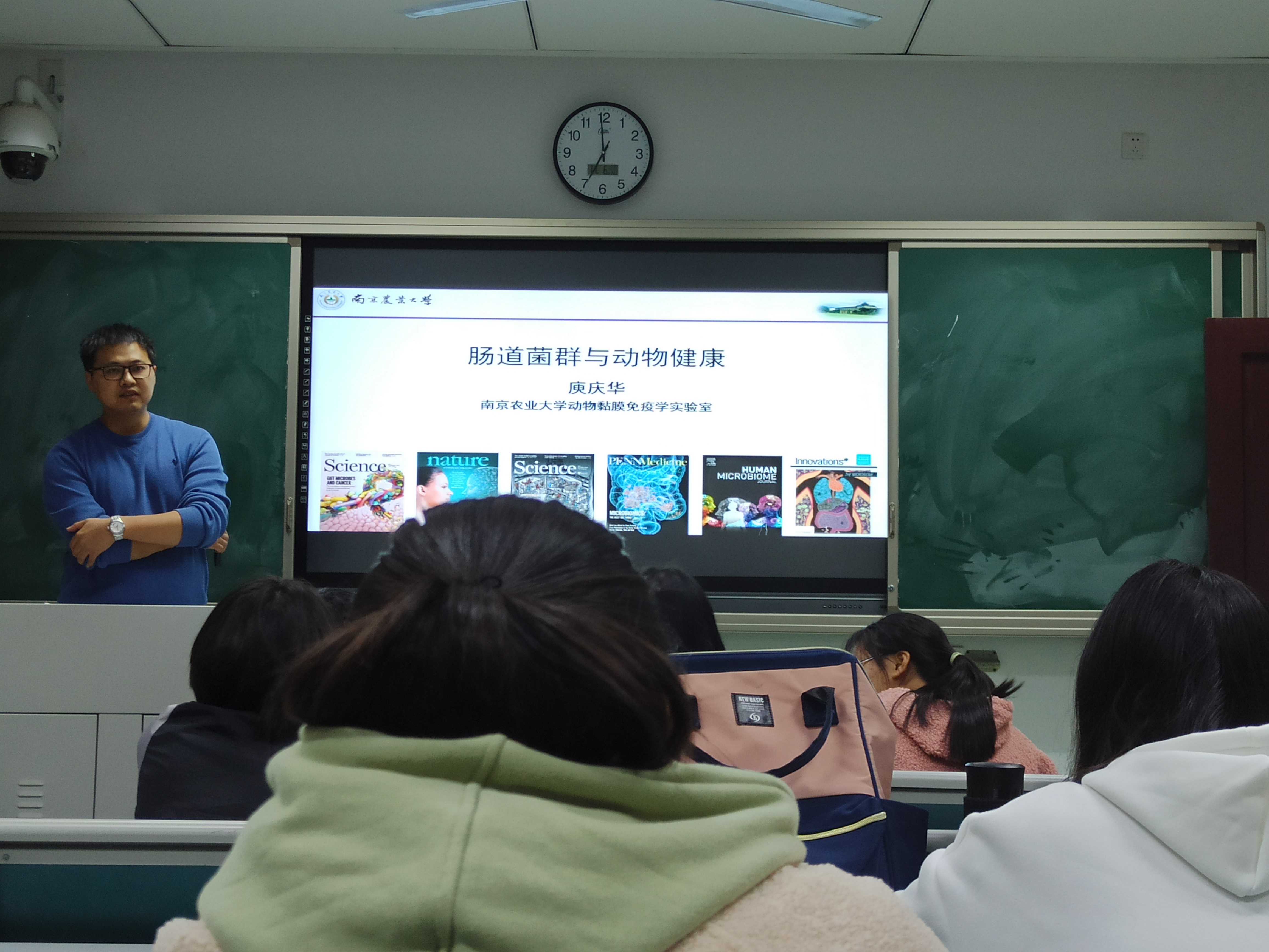 11月6日,杨振老师于逸夫楼3044举行的以“食品(农场)动物兽医是做什么的?”为主题的新生教育课获得圆满成功。杨老师以美国为例讲述了畜牧养殖的变化、食品动物健康管理演变等,并向同学们介绍食品动物兽医的能力和技能要求及需求。杨老师不仅仅在课上精心为同学们讲解与该节课相关内容,还在课下对同学们的踊跃提问耐心地回复,解答了同学们有关将来规划、出国留学相关准备之类的问题,让同学们受益匪浅,对自己在大学的学习有了更加清晰的目标。