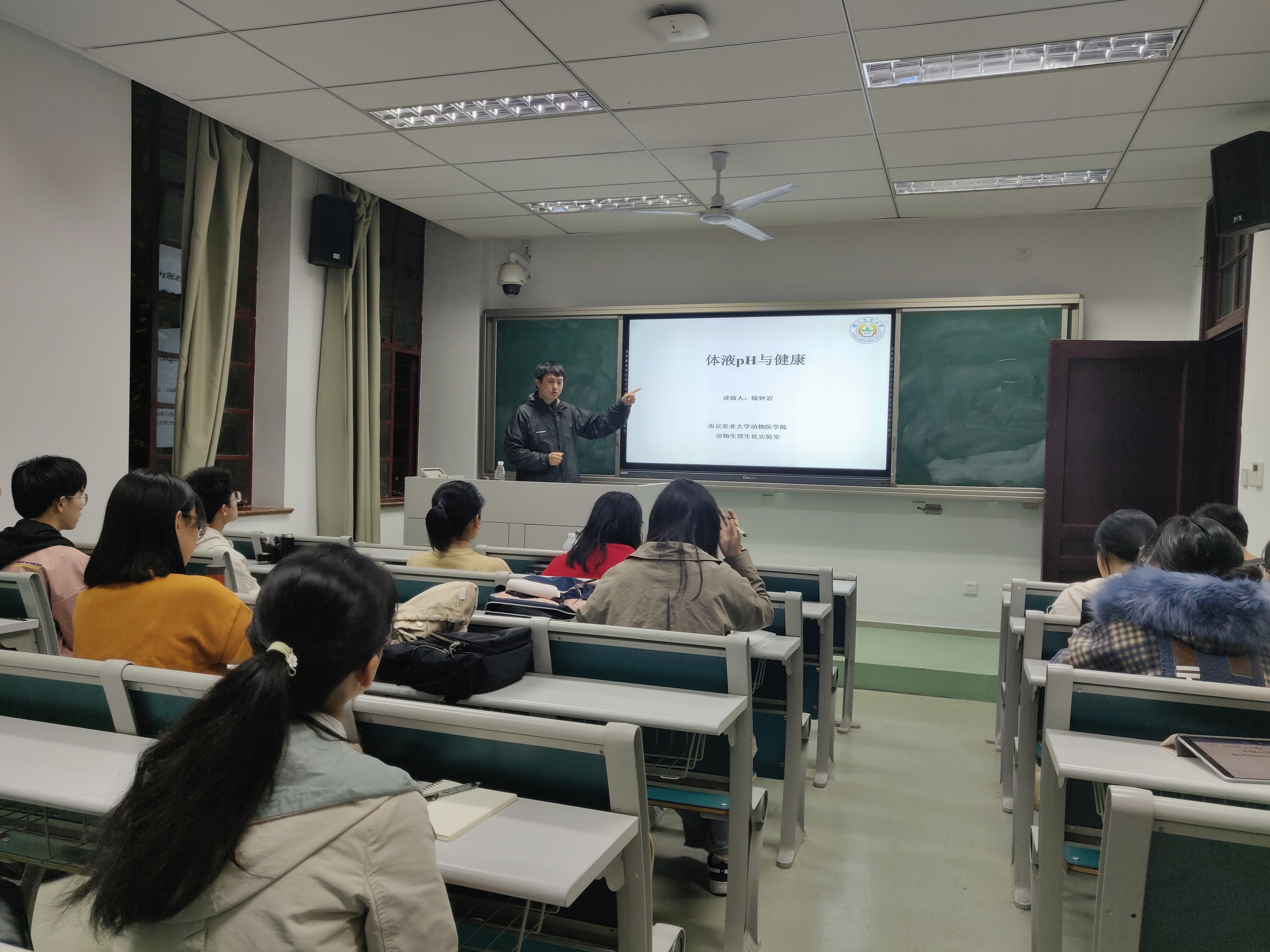 11月5日晚在主楼225陆钟岩老师给新生们开展了一堂主题为酸碱平衡与健康的研讨课。