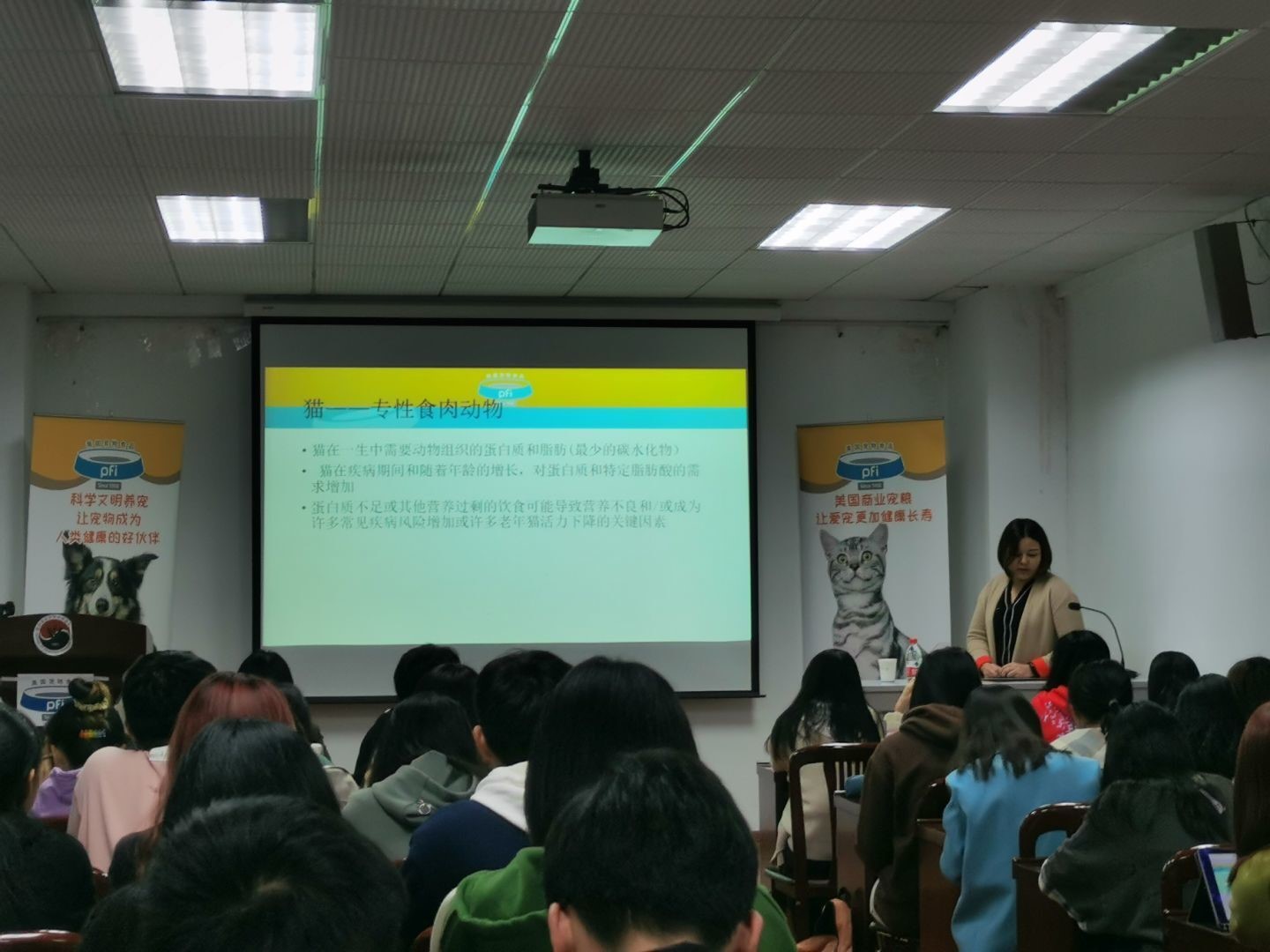 11月12日晚7点美国宠物食品协会宠物医师系列课程第四讲在南京农业大学逸夫楼3044顺利举办。本次课程题目为《猫的营养需求》,由现任艾贝尔中央猫科医院主任兽医师及小区技术经理陈舒蒙主讲。