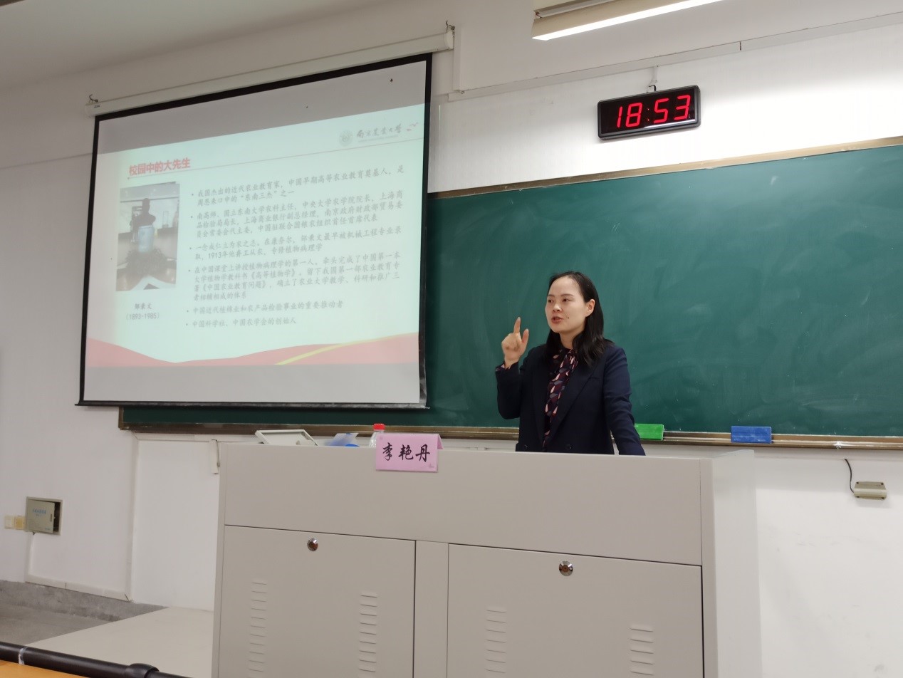第一部分,李艳丹首先向我们介绍了南京农业大学的历史变革以及校园中的大先生,让我们对学校的发展和众多前辈先贤有了进一步的学习和认识。