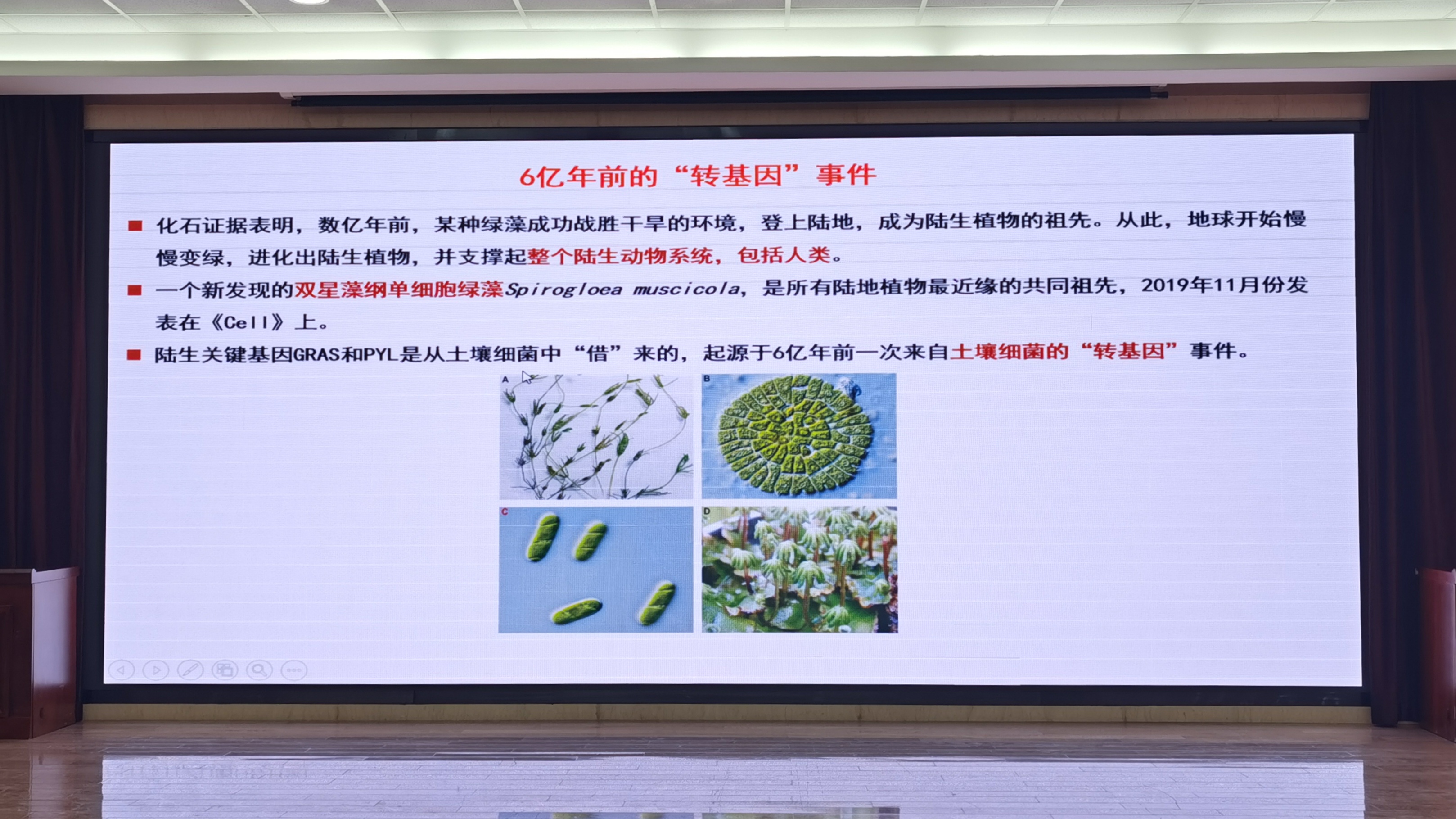 接着由曹爱忠院长在会场进行了《作物转基因及生物安全管理》讲座报告。她生动地向大家讲述了什么是转基因,转基因育种和传统育种该如何选择,转基因技术在全球科技生活中的应用,转基因品种产业化的生物安全评价等转基因相关的多方面内容。重点介绍了近期国家颁布的《生物安全法》,再次强调了生物安全的重要性,并通过科普展览、多重举例的形式向大家具体形象地介绍了转基因技术是如何影响人类的生活、我们应该如何正确对待转基因技术等问题。