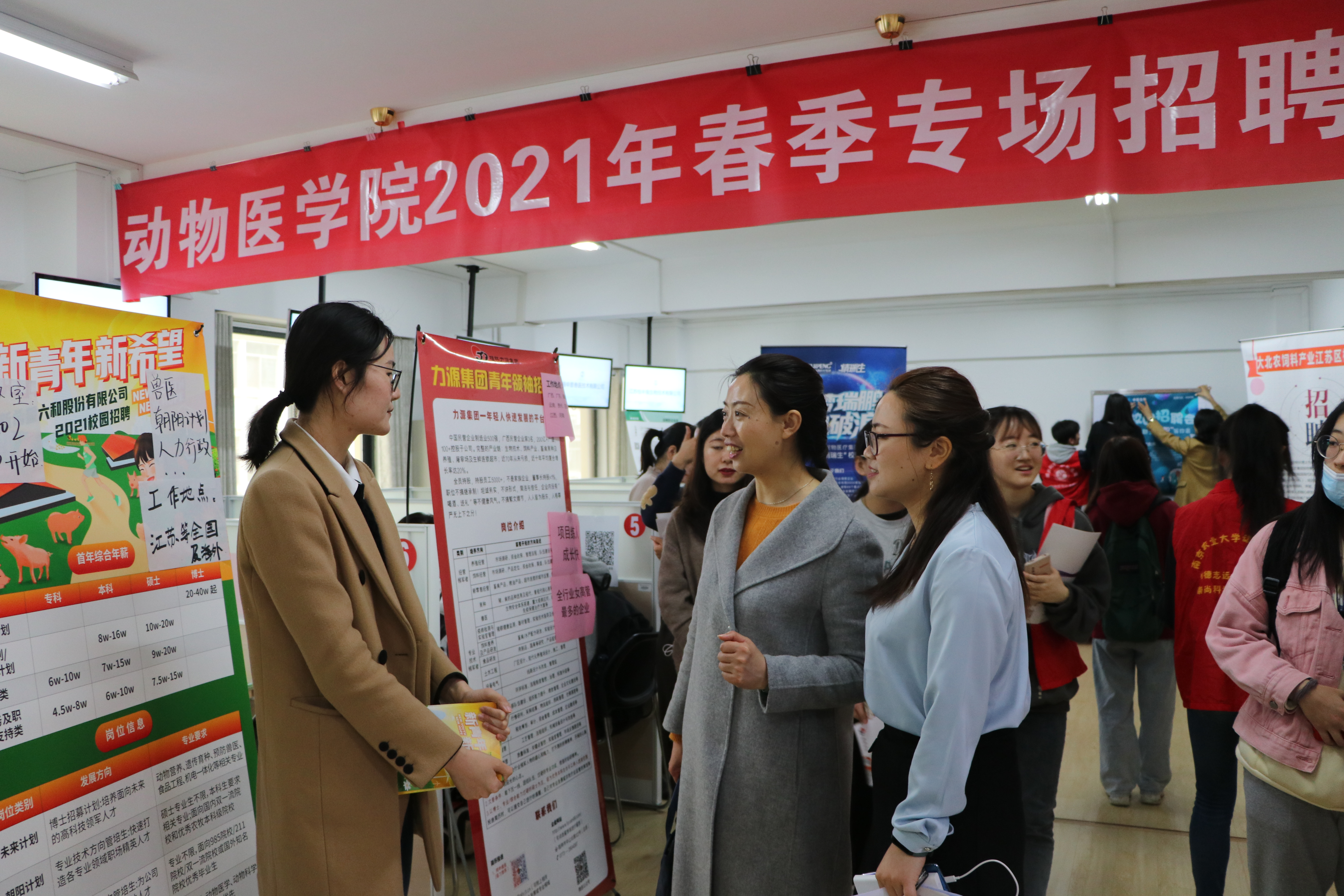 参与本次招聘会的用人单位有国有企业、民营企业、中外合资企业等;招聘需求多种多样,涵盖了生物技术、畜牧养殖、小动物、兽药疫苗等多个领域,涉及动物医学、动物药学、预防兽医、临床兽医、动物科学、生命科学、中药学等多个专业。在招聘面试现场,同学们就工作岗位基本情况、薪资待遇、公司发展情况等方面与用人单位进行了沟通交流,并向心仪企业投递了简历。
