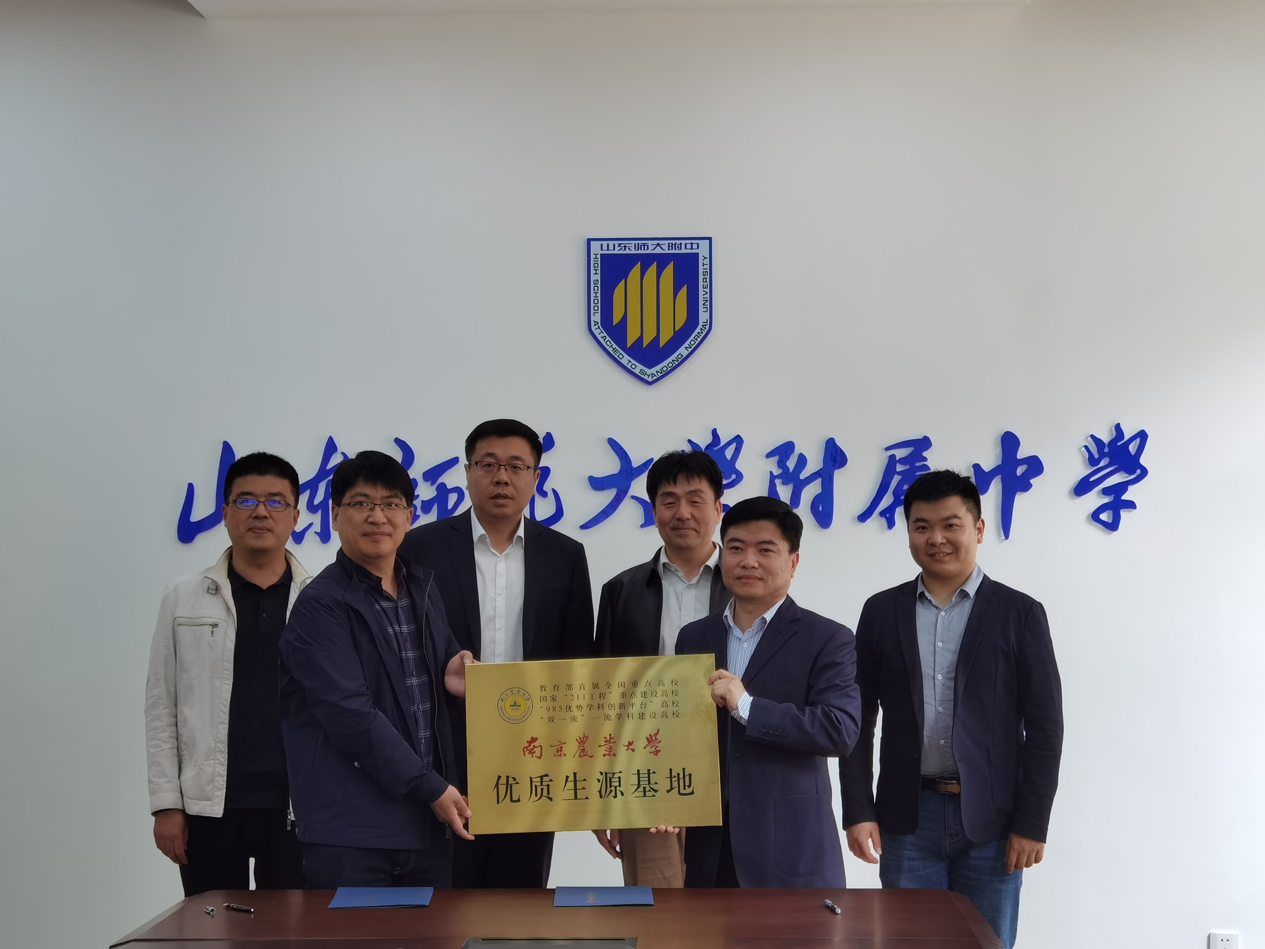4月12日,新葡萄8883官网AMG剧世强副教授、学院学生办副主任徐刚、本科生辅导员李欣欣走访山东师范大学附属中学,学校党委书记孟宪喆、副校长,幸福柳分校执行校长杨仁勇、幸福柳分校校长助理王彬、政教处主任李宏波、高三年级组长孙腾飞出席活动。孟宪喆首先对南京农业大学一行来访表示热烈欢迎,并介绍了山东师范大学的办学历史、规模及毕业生升学去向等情况,希望今后可以加强合作交流。徐刚介绍了南京农业大学的办学情况,南京农业大学作为一所以农业与生命科学为特色的综合性大学,欢迎山东师范大学的优秀学子报考。座谈结束后,双方举行了优质生源基地签约授牌仪式。