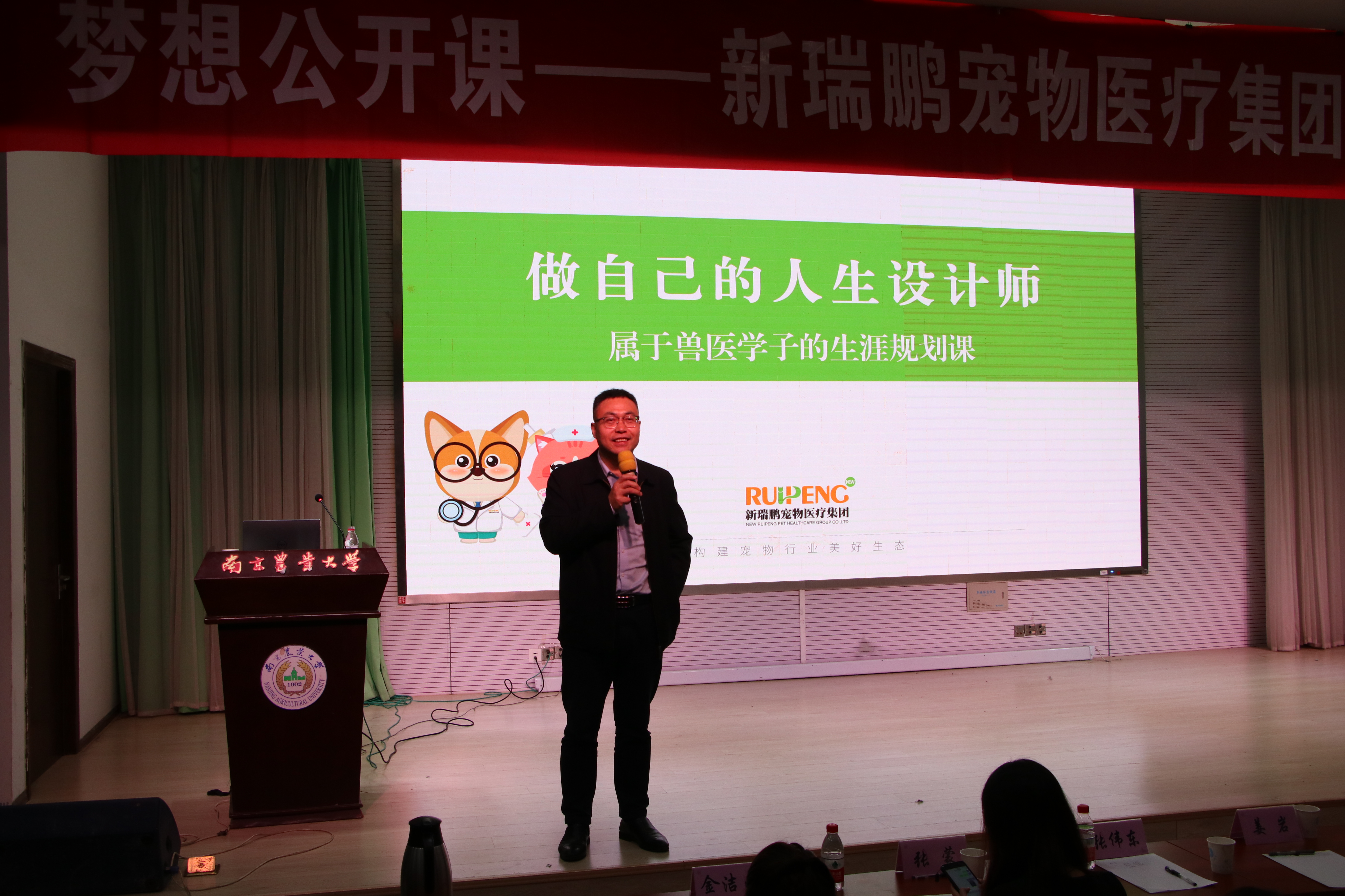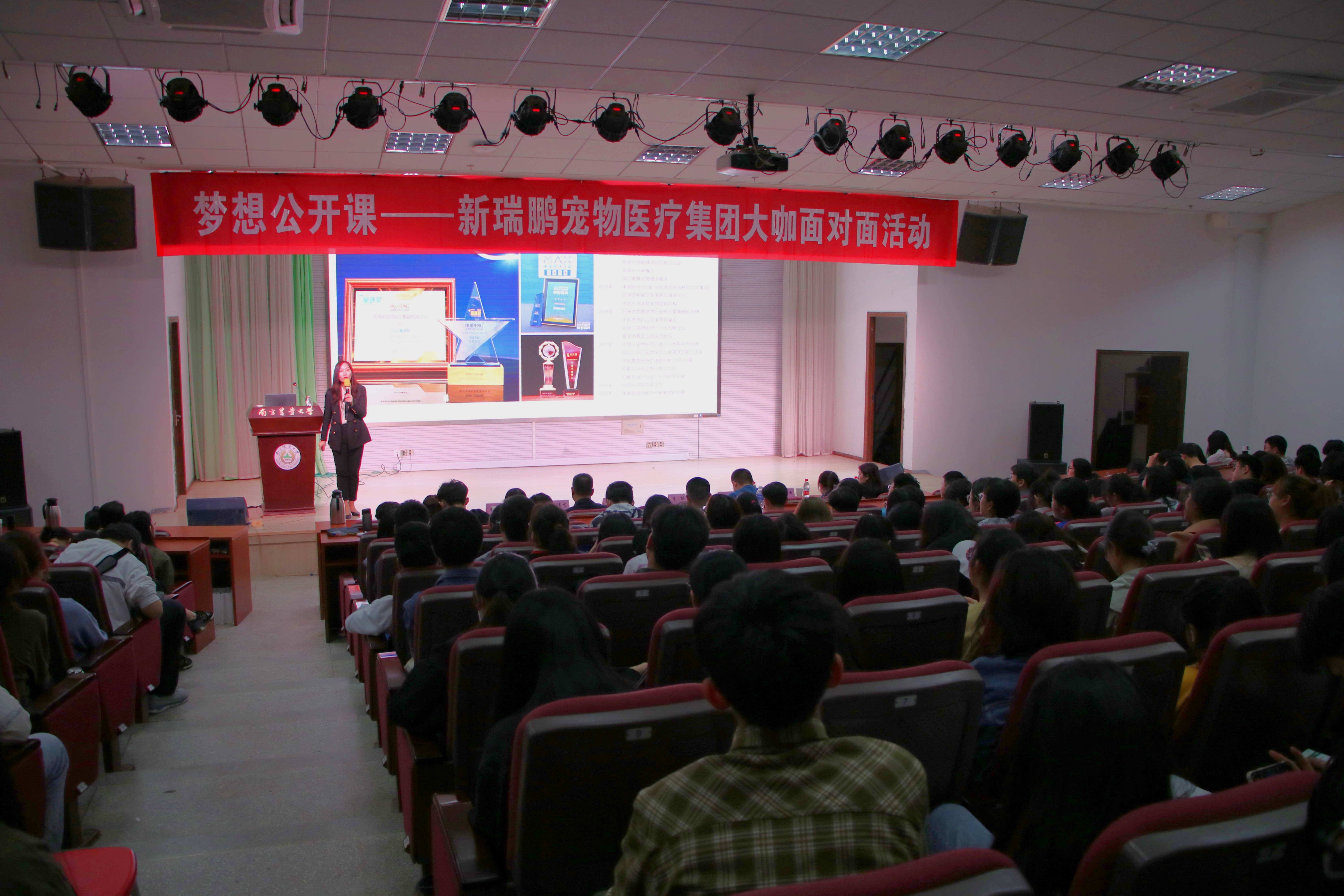 4月28日晚上7:00,新葡萄8883官网AMG“梦想公开课”——新瑞鹏宠物医疗集团大咖面对面活动在教四楼报告厅举办。新葡萄8883官网AMG党委书记姜岩,党委副书记刘照云,辅导员金洁南、徐刚、李欣欣;新瑞鹏宠物医疗集团副总裁李丽,华东副总经理张伟东,总部招聘总监李鹏,人力行政部主管张蒙、刘晓芹,以及学院2018级、2020级全体本科生参与此次讲座。