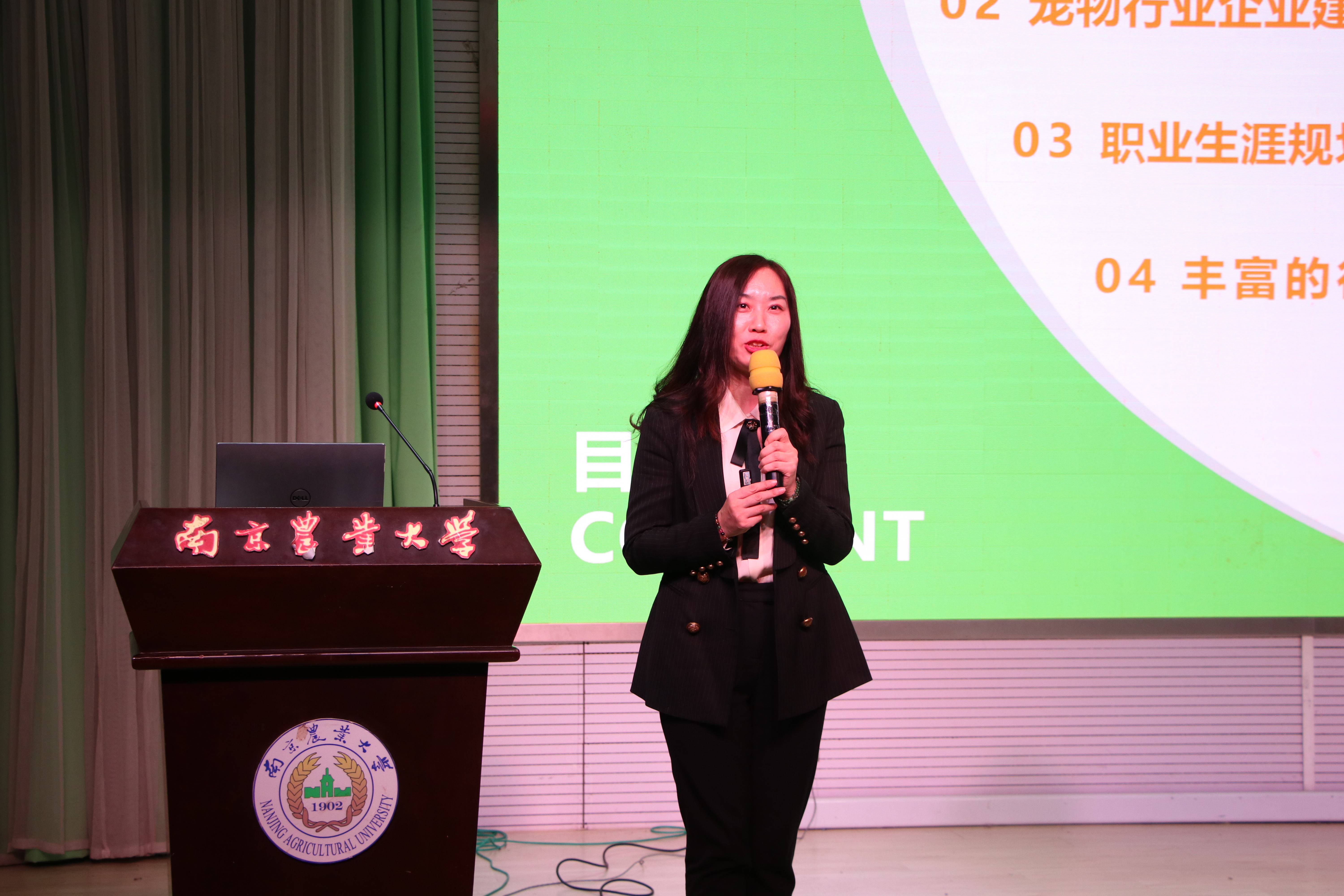 接着,李丽以“预见宠物医疗行业·预见美好未来”为主题,给大家开展了饶有意义的主题讲座。她向同学们介绍了宠物医疗行业的发展现况和美好前景,指出宠物医疗行业是大有可为的行业、是朝阳行业。她鼓励同学们抓住时代发展的机遇,更多地投身到小动物诊疗行业中去,提高我国小动物诊疗的专业水平。同时,李丽向同学们系统地介绍了新瑞鹏的发展模式、人才队伍、发展现状等企业信息,向同学们展示了一线宠物医疗行业的情况,并给出了生涯规划的相关建议。